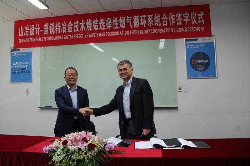2018年5月24日,在普銳特冶金技術(中國)有限公司總部上海,公司董事長魏新民和普銳特冶金中國區(qū)CFO Stefan先生簽訂了燒結機選擇性煙氣循環(huán)(SWGR)技術合作協(xié)議,公司副總經(jīng)理宋志順、設計管理部總師孫榮生、市場部部長趙圣存和普銳特冶金節(jié)能環(huán)保部總經(jīng)理Peter、營銷總監(jiān)梁君、山東大區(qū)經(jīng)理孫磊一同參加了本次合作協(xié)議的簽約儀式。此協(xié)議的簽訂標志著公司開始與普銳特冶金在中國國內乃至印度、伊朗共同推廣燒結機煙氣循環(huán)技術。