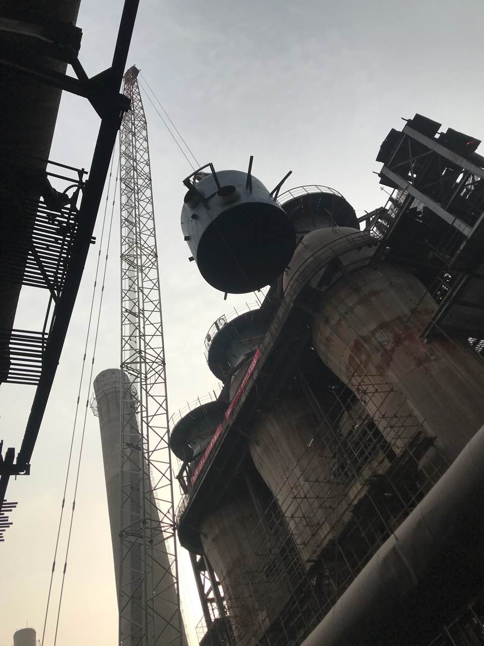 安陽(yáng)沙鋼永興3#、4#580立方米高爐熱風(fēng)爐大修工程于11月15日正式開(kāi)工,到今天共計(jì)14天的時(shí)間,先后完成了老熱風(fēng)爐系統(tǒng)的拆除及熱風(fēng)爐新建,完成耐材拆50%,鋼結(jié)構(gòu)拆除完成,設(shè)備拆除完成,自動(dòng)化系統(tǒng)拆除完成,新建爐殼已封頂兩座。