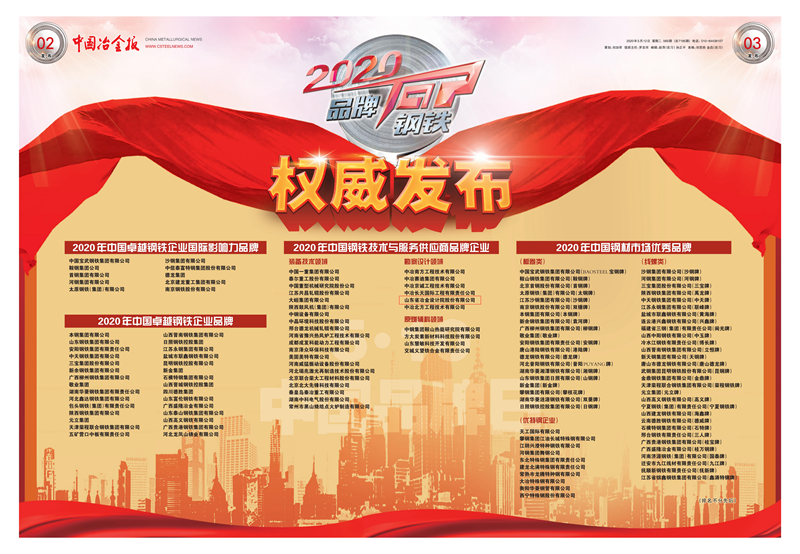 山冶設(shè)計喜獲“2020年中國鋼鐵技術(shù)與服務(wù)供應(yīng)商品牌企業(yè)”